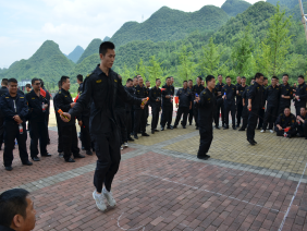 二、此次活動(dòng)邀請(qǐng)了監(jiān)管機(jī)關(guān)及客戶單位共17家到場(chǎng)觀摩指導(dǎo)。分公司經(jīng)理黃水波向蒞臨的各級(jí)領(lǐng)導(dǎo)和來賓致歡迎詞,對(duì)他們的到來表示熱烈的歡迎和由衷感謝。室外科目為跳繩、接力賽、拔河三個(gè)項(xiàng)目。跳繩每隊(duì)為3名隊(duì)員,記集體總成績,各大、中隊(duì)精心挑選出各自跳繩尖子,積極為參賽人員吶喊、助威,一個(gè)個(gè)參賽的帥小伙瞬間變成了蹦蹦跳跳的“小女生”。接力賽為6乘50米,各中隊(duì)長抽選運(yùn)動(dòng)健將,為著各自的榮譽(yù)和不服輸勁頭在賽場(chǎng)上拼命沖刺。最激烈的當(dāng)數(shù)拔河比賽了,各參隊(duì)每隊(duì)為10人,分為淘汰賽、半決賽和決賽,各大、中都將“大塊頭”、“大胖墩”推上賽場(chǎng),隨著裁判員的一聲哨音,現(xiàn)場(chǎng)仿佛炸開了鍋,在旁觀加油鼓勁的人員似乎比拔河人員更賣力,邀請(qǐng)到的客戶單位領(lǐng)導(dǎo)也都在為各自派駐中隊(duì)參賽隊(duì)員加油,活動(dòng)氛圍瞬時(shí)達(dá)到頂峰。