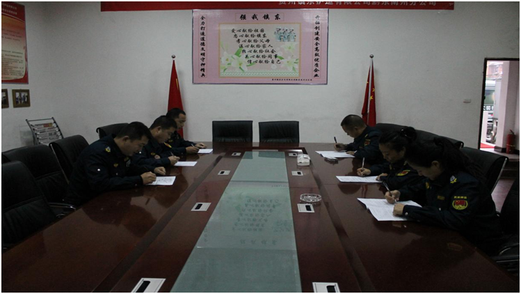 11月底,六盤水市分公司召開了月安全形勢分析會,對當(dāng)月每位員工思想動態(tài)問卷調(diào)查的工作進(jìn)行小結(jié),并對12月份的工作進(jìn)行安排部署。目前,押運隊伍比較穩(wěn)定,隊員思想素質(zhì)相對較好,沒有波動,各項工作順利進(jìn)行。